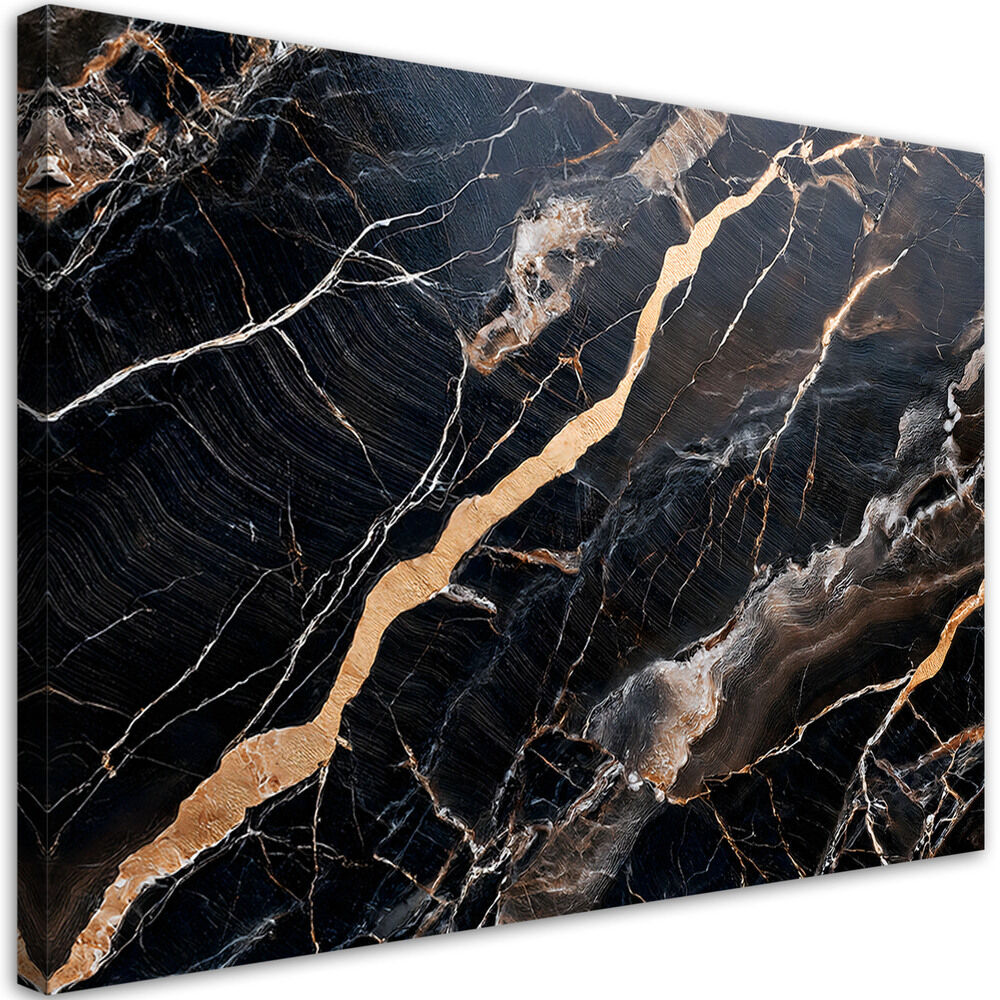 Lærred print, Sort marmor med guldabstraktion