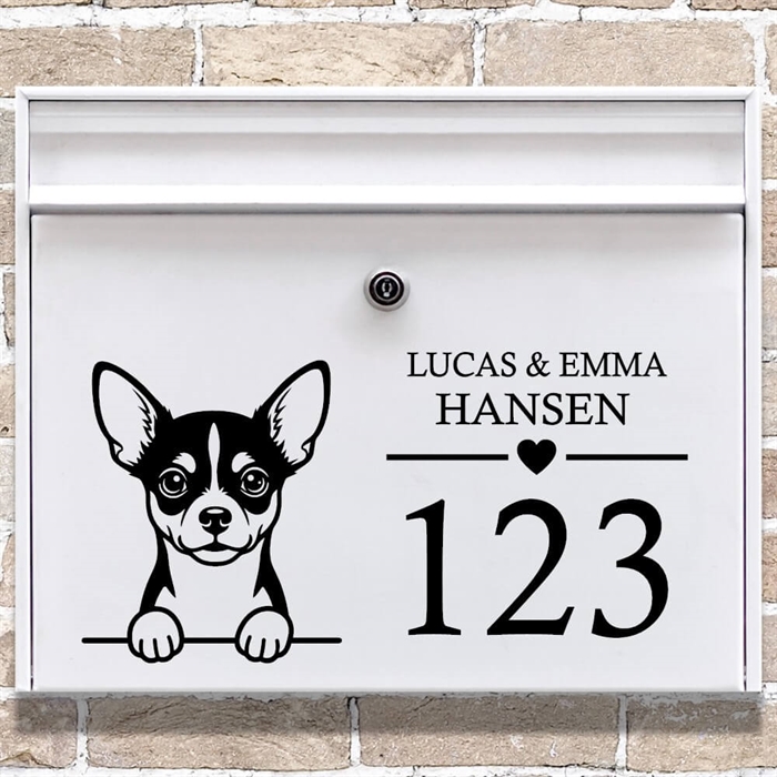 Postkasse sticker med Chihuahua og navn