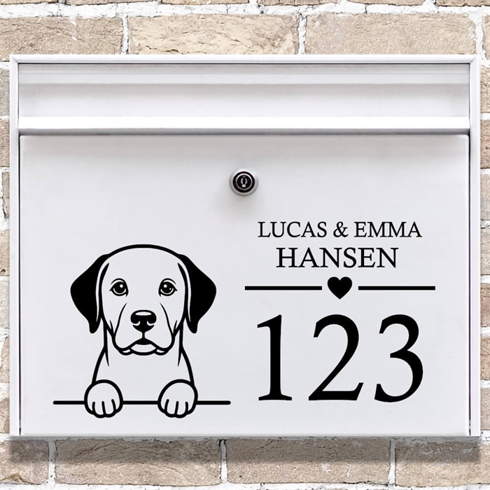 Postkasse sticker med en Labrador og navn