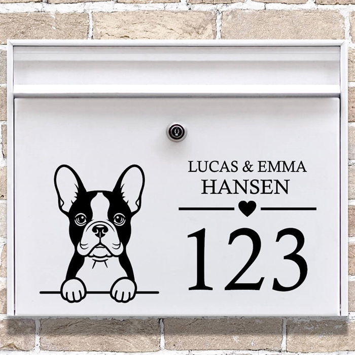 Postkasse sticker med Fransk bulldog og navn