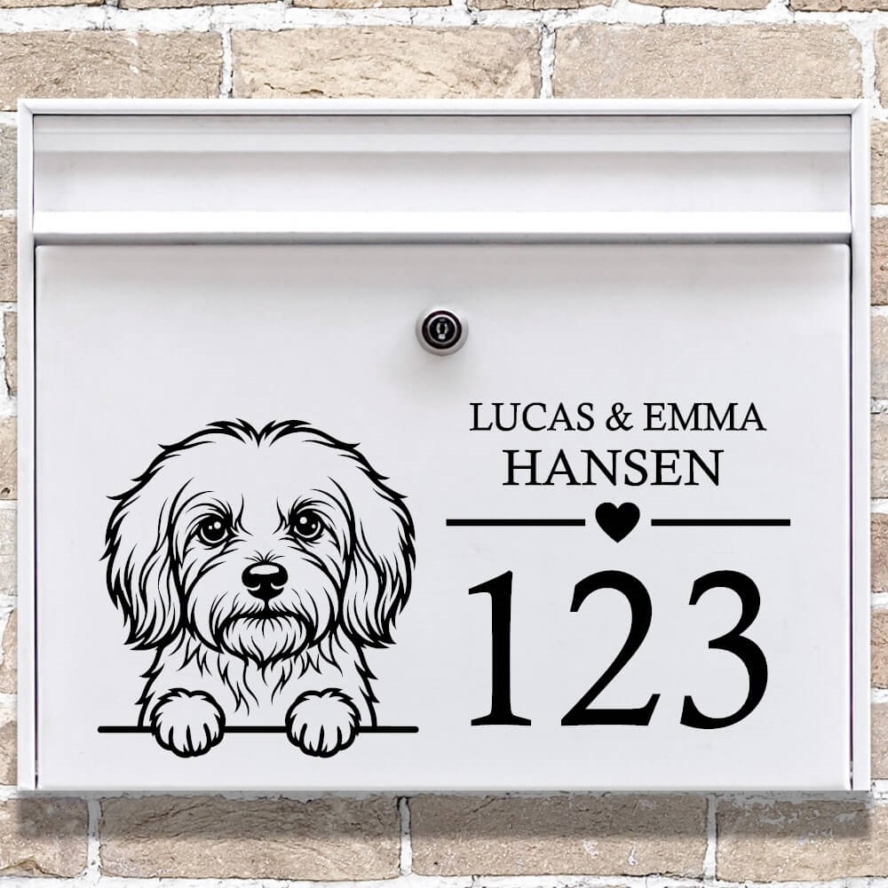 Postkasse sticker med Bichon Havanais og navn