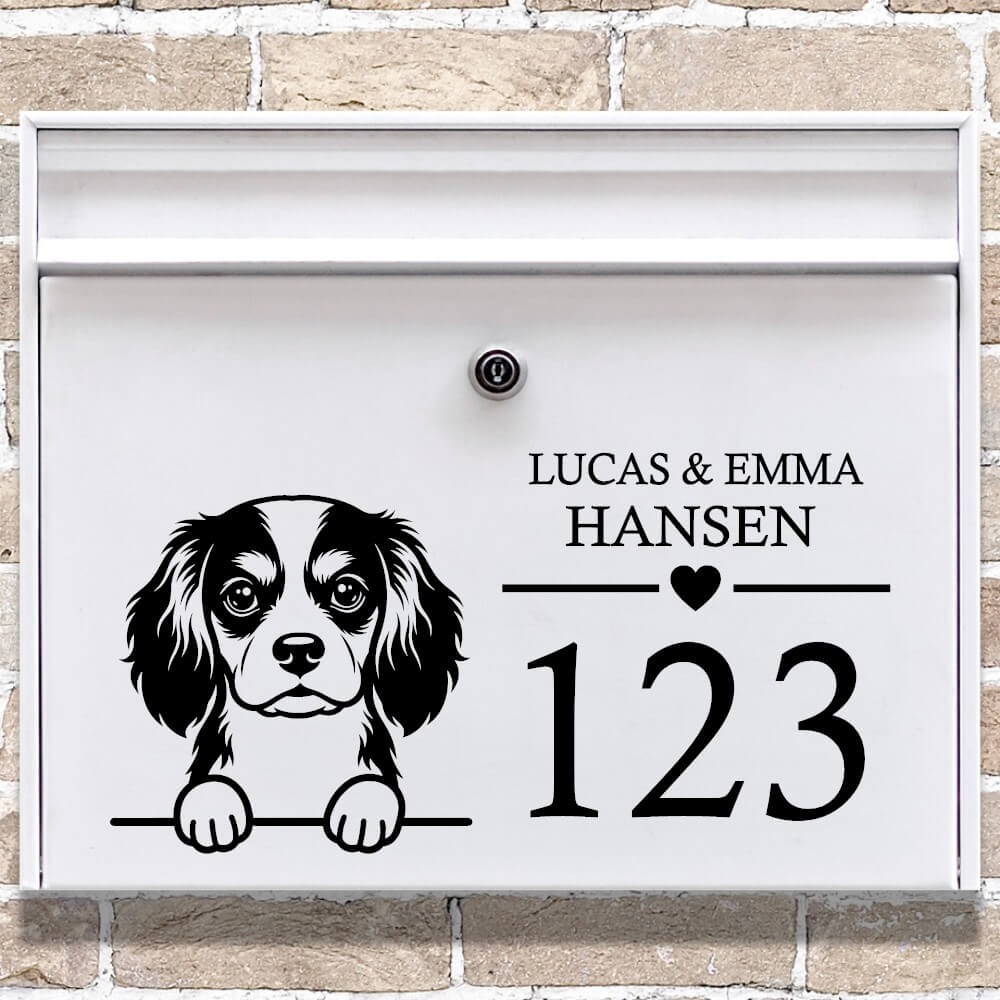 Postkasse sticker med Cavalier King Charles Spaniel og navn